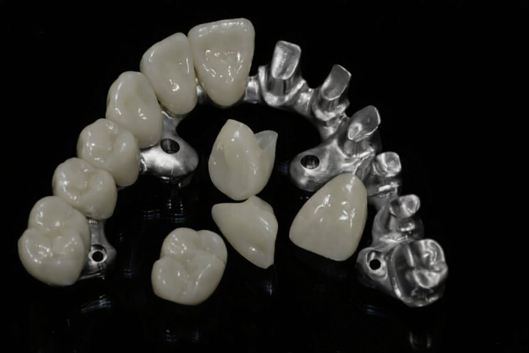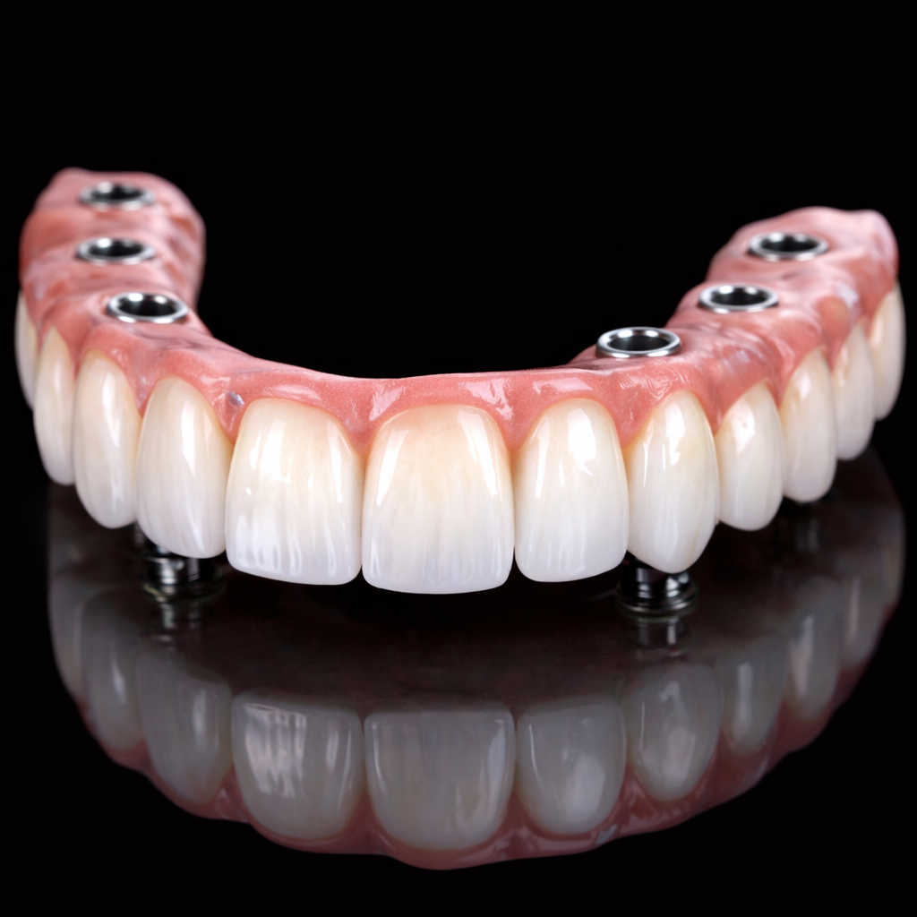 Our Full Arch Implant Restorations are available in a range of premium materials to suit different clinical needs, budgets, and aesthetic goals. At eDentalab, we offer high-strength monolithic zirconia for maximum durability, layered zirconia for superior aesthetics, PMMA for immediate or provisional restorations, titanium-acrylic hybrids for lightweight, cost-effective solutions, and implant-supported acrylic overdentures for removable, patient-friendly options. Using advanced digital workflows and precision manufacturing, we customize each restoration to deliver optimal fit, function, and long-term performance—giving clinicians the flexibility to choose the right solution for every full-arch case and patient satisfaction with every case.